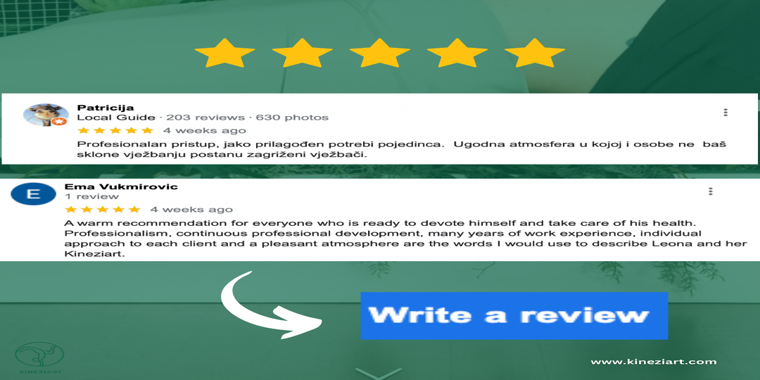 Način suradnje moguć je uživo i online. A za sve vas koji volite trenirati kod kuće, pripremila sam besplatni video materijal na mom youtube kanalu kojeg možete naći pod imenom KINEZIART. Ti su treninzi osmišljeni tako da vam pomognu da se aktivirate iz udobnosti vlastitog doma. Općenitiji su i sadrže rad s pomagalima koje imate kod kuće i koji su lako nabavljivi (gume, štap, velike i male lopte, bučiće i girje te kućni inventar). Za više informacija posjetite me na mom kanalu i pretplatite se za više sadržaja.